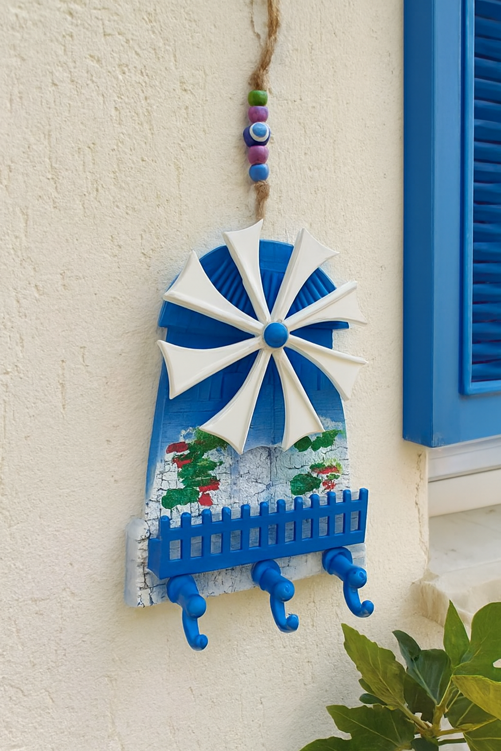 "Evinize Ege ve Akdeniz kültürünün esintisini taşıyan yel değirmeni, üzerindeki begonvil desenleri ve nazarlık detayıyla hem şıklığı hem de şansı bir araya getiriyor. İster balkonunuzda ister iç mekan dekorasyonunda kullanabileceğiniz bu duvar süsü, sevdikleriniz için de harika bir hediyelik eşya seçeneği sunuyor."