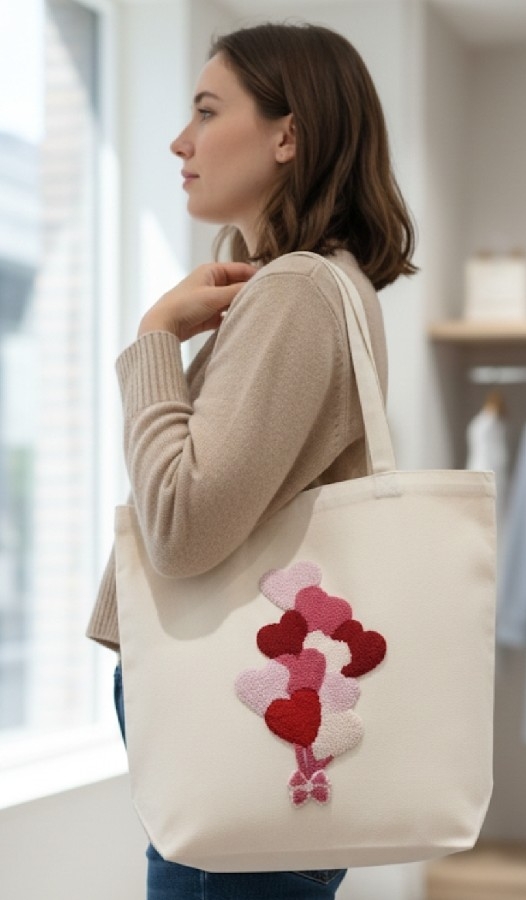 Kalp Balon Nakışlı Ham Bez Tote Çanta Sevgiyle Taşınan Şıklık! Günlük stilinize hem romantik bir dokunuş hem de pratik bir kullanım katmaya ne dersiniz? Özenle seçilmiş dayanıklı ham bez kumaş üzerine, yüksek kaliteli havlu nakış (punch) tekniği ile işlenen kalp balon figürleri, bu çantayı sıradan bir aksesuardan çok daha fazlası haline getiriyor. Ürün Özellikleri: Malzeme: %100 Doğal ve dayanıklı ham bez kumaş. Tasarım: Kabarık dokulu, pembe ve kırmızı tonlarında özel el işçiliği görünümlü kalp nakışları. Kullanım Alanı: Alışverişte, okulda, plajda veya günlük yürüyüşlerinizde geniş iç hacmiyle tüm eşyalarınızı rahatça taşır. Ekolojik: Plastik poşet kullanımını azaltan, doğa dostu sürdürülebilir bir seçim. Bakım: Uzun ömürlü kullanım için düşük ısıda elde yıkama önerilir. Boyutlar: Standart Tote Bag ölçülerinde (Geniş iç hacim, omuzda taşımaya uygun askı boyu).
