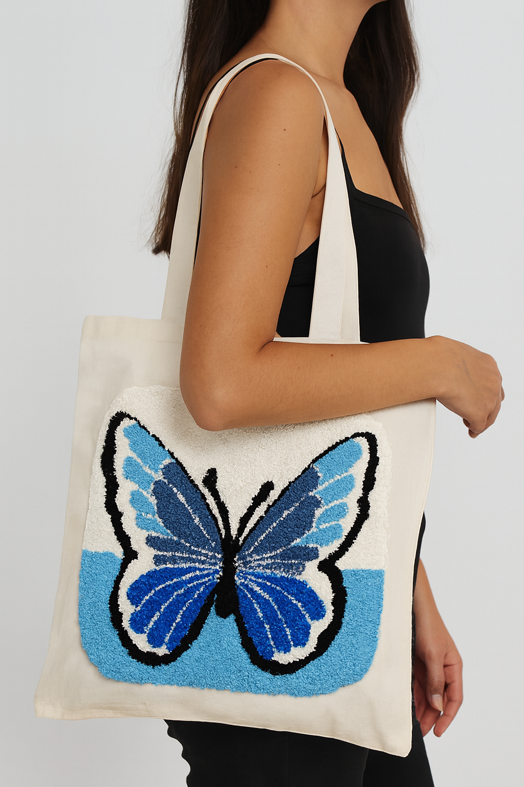 Kanatlarını açmaya hazır mısın? Doğanın en zarif sembollerinden biri olan mavi kelebek, şimdi omuzunuzda hayat buluyor. Beyaz zemin üzerine işlediğimiz, mavinin en huzurlu tonlarına sahip bu kelebek, size her gün hafifliği ve dönüşümü hatırlatacak.