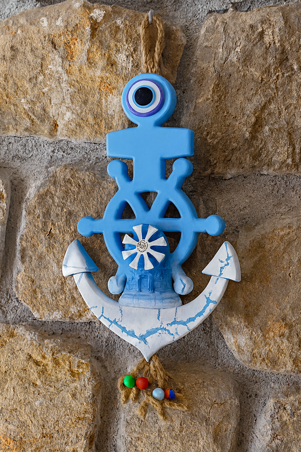 Yaşam alanlarınıza denizin huzurunu ve mavinin enerjisini taşıyın! El işçiliğiyle hazırlanan bu özel koleksiyon, marin stilinin en ikonik sembollerini (Gemi Dümeni ve Çapa) geleneksel nazar boncuğu ve yel değirmeni figürleriyle buluşturuyor.