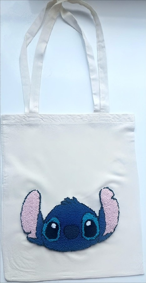 Stitch Temalı El Yapımı Punch Nakışlı Kanvas Çanta