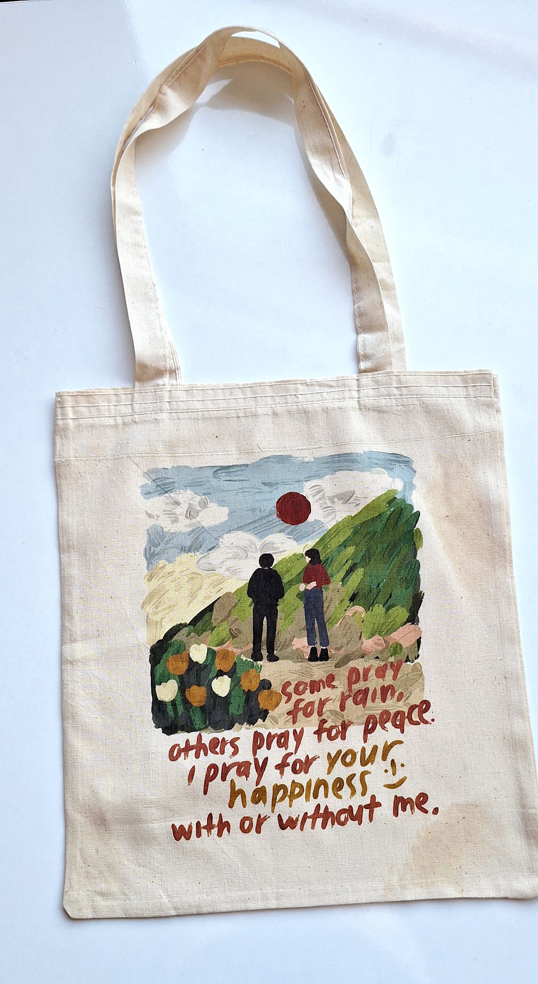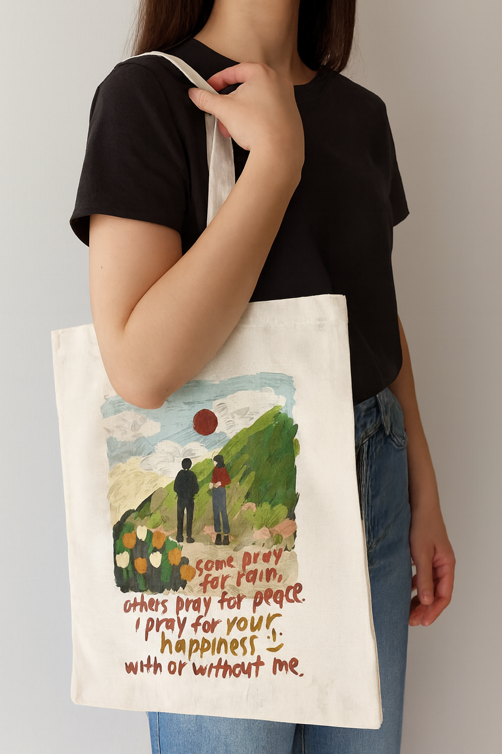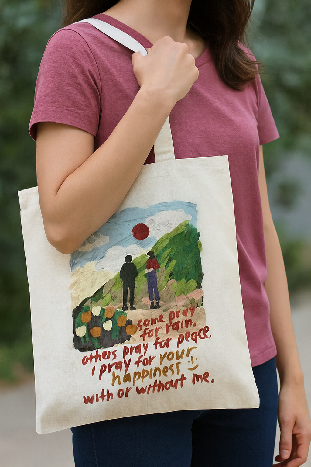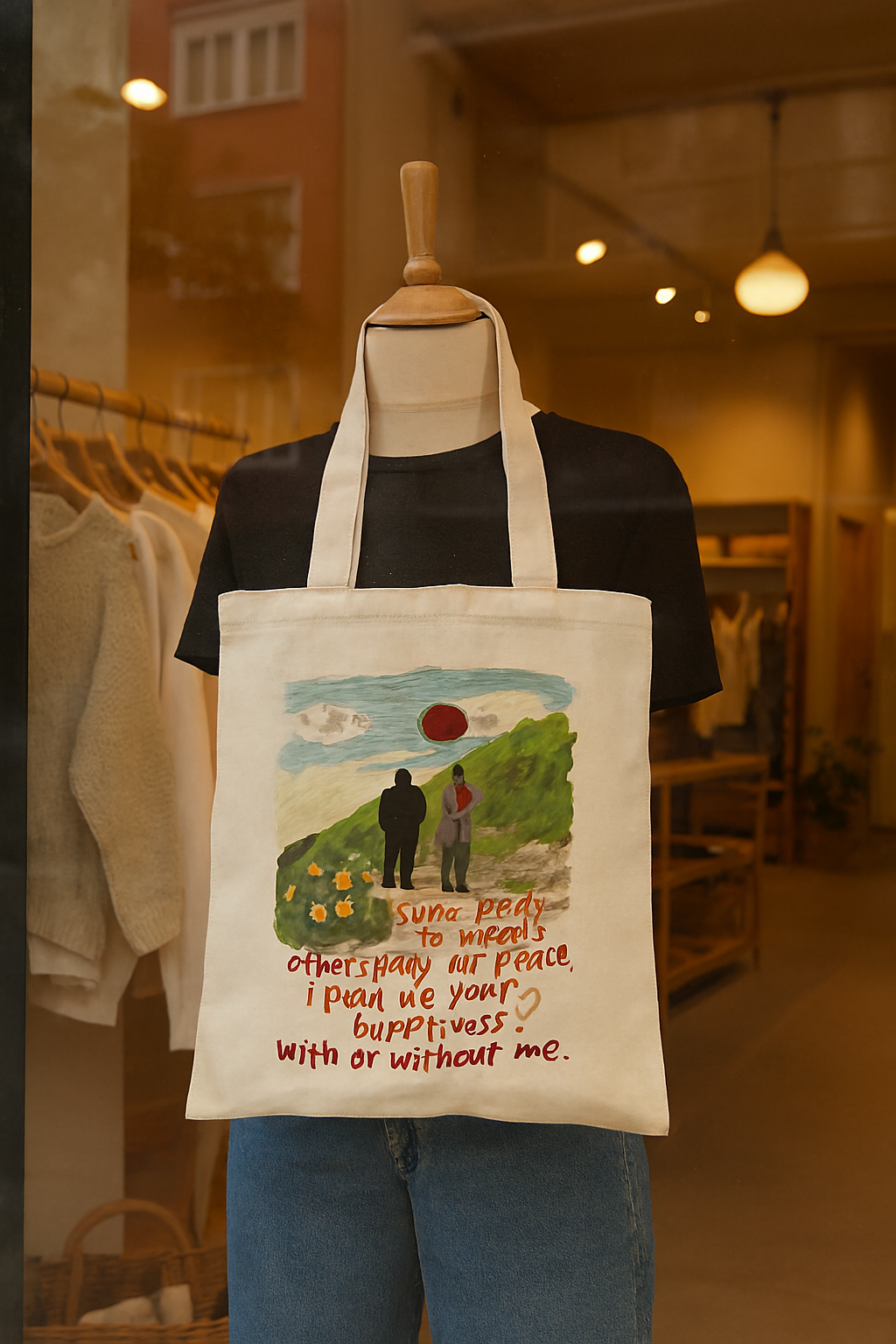 Sadece bir çanta değil, yanınızda taşıyabileceğiniz bir sanat eseri. Üzerindeki özgün illüstrasyon ve derin anlamlar taşıyan el yazısı notuyla bu kanvas çanta, stilinize entelektüel ve naif bir dokunuş katıyor. Doğa manzarasının huzurunu ve melankoliyi birleştiren bu tasarım, günlük kombinlerinizin en anlamlı parçası olacak.